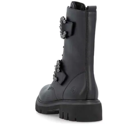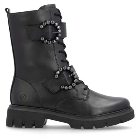 Let og smart støvle med en overdel af glat skind og syntet. Støvlen justeres med snørebånd og to velcroremme med runde pyntespænder af mørkt metal, og den lukkes med en lynlås på indersiden af anklen. En lille trækfane bagpå gør det nemt at træde i støvlen, som har et blødt fleecefoer. Med komfortvidde er der mere plads om forfoden. Indersålen er komfortabel, og den kraftige ydersål er stødabsorberende med et fint fodfæste.