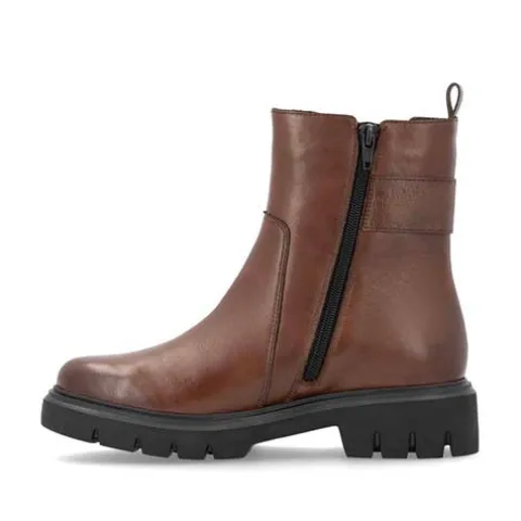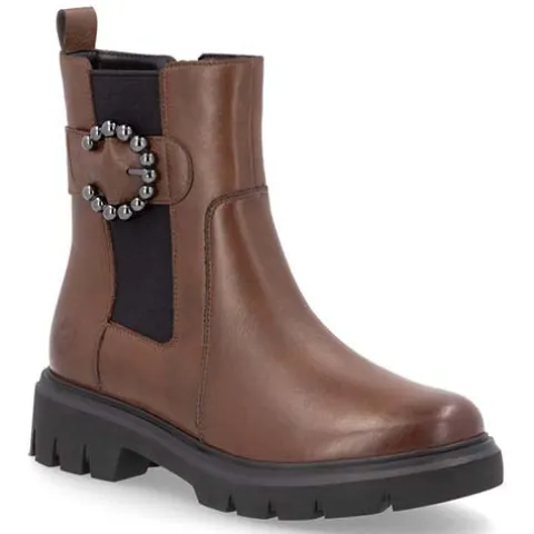 Lækker og let støvle perfekt til efteråret. Overdelen er af glat skind samt et elastikpanel på ydersiden af anklen dekoreret med en rem med et smart pyntespænde. Støvlen lukkes med en lynlås på indersiden af anklen, og en trækfane bagpå gør det nemmere at træde i støvlen. Komfortvidden giver lidt mere rummelighed om forfoden Indvendig har støvlen et let og lunt foer samt en udtagelig indersål beklædt med et lunt foer. Den kraftige ydersål er stødabsorberende med et godt fodfæste.