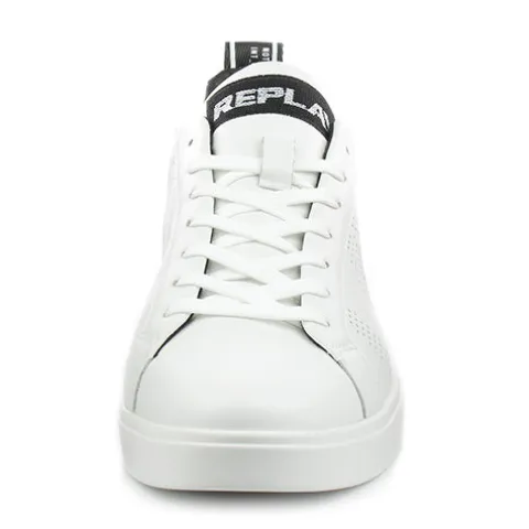 Lækker og moderne Polaris Perf Camo sneaker fra Replay. Overdelen er af blødt glat læder med perforeret detalje på ydersiden samt logo på pløsen. Hælen har en sort detalje samt trækfane, og den hvide ydersål har en sort detalje. Skoen lukkes med snørebånd. Den udtagelige indersål er blød og komfortabel, og den fleksible gummiydersål giver både et godt fodfæste og en god bevægefrihed til foden.