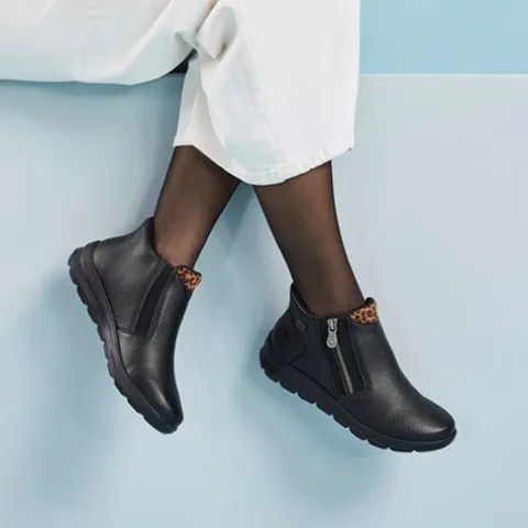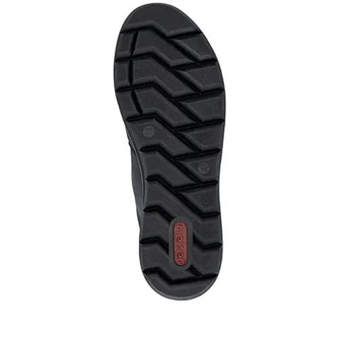 Smart Ready2GO støvle med en overdel af syntet med et elastikpanel på indersiden af anklen. Indvendig har støvlen et lunt foer, og sammen med en kraftigt vandafvisende RiekerTEX-membran holdes fødderne lune og tørre. Støvlen lukkes med en lynlås på ydersiden af anklen. Den udtagelige indersål er polstret, støddæmpende og komfortabel, og den fleksible gummiydersål er stødabsorberende med et godt fodfæste.