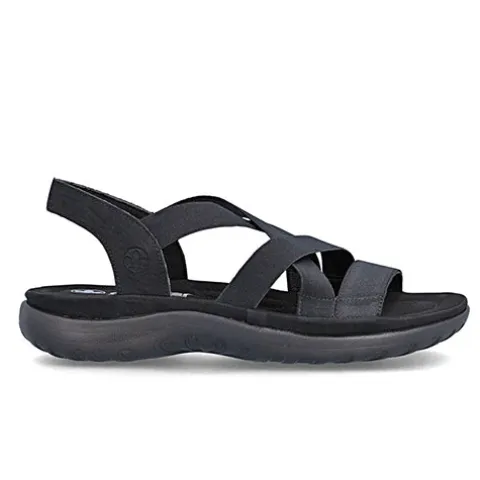 Dejlig og let Light sandal med en overdel af elastikremme og en hælrem af imiteret skind. Med komfortvidde er sandalen en smule mere rummelig om forfoden. Den polstrede dæksål er komfortabel, og den fleksible ydersål er stødabsorberende.
