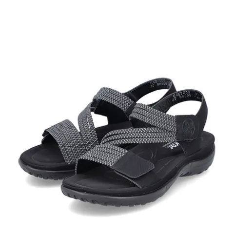 Smart sandal med en overdel af syntet med elastikker over forfod og vrist. Sandalen lukkes med en velcrorem over vristen og en over forfoden, og remmene består af flere elastikbånd og tilpasser sig nemt din fod. Antistress-indersålen er polstret, og den kraftige ydersål er stødabsorberende og fleksibel.
