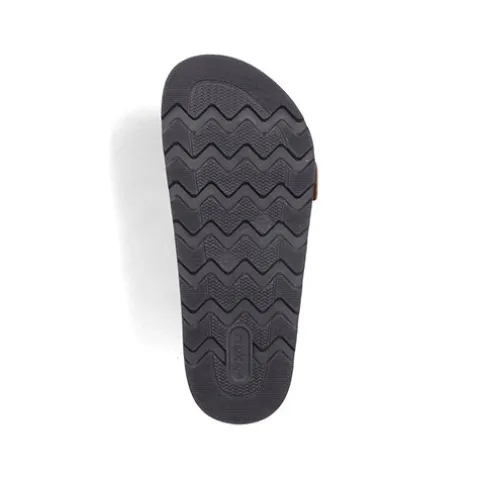 Lækker og ultralet slippers-sandal med en overdel af glat, olieret skind foret med imiteret glat skind. To remme med justerbare spænder over forfod og vrist holder foden på plads, godt assisteret af den forholdsvis dybe fodskål. Sandalen har ekstra vidde, og dæksålen er polstret, blød og komfortabel samt beklædt med ruskind for optimal komfort og godt fodklima. Ydersålen er stødabsorberende med et fint fodfæste.