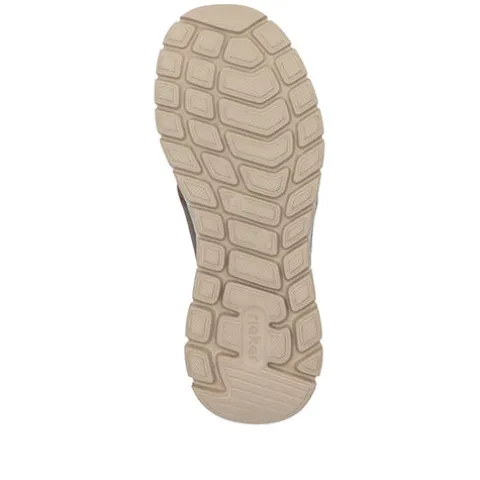 Flot og meget let Rieker Lite sko med en overdel af lækkert striktekstil og syntetisk læder. Skoen er en slip on-model med en strømpelignende funktion med en fast pløs og en ikkejusterbar elastiksnøre, og en trækfane på hælen gør det nemt at træde i skoen. En vandafvisende membran af RiekerTEX sørger for at holde fødderne behagelige, og med komfortvidde er der ekstra plads om forfoden. Antistress-indersålen er komfortabel, og den fleksible ydersål er stødabsorberende med et fint vejgreb.