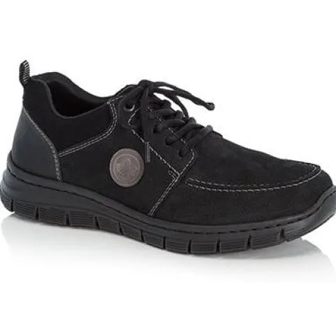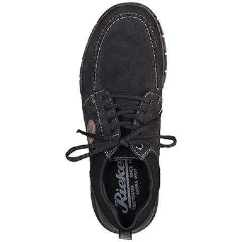 Komfortabel og anvendelig Riekersko. Skoen er med tekstilsnørerbånd og har god polstring rundt i åbningen. Den er foret med tekstil og har en blød dæksål, som gør den meget behagelig at have på en hel dag. Let og fleksibel ydersål. Modellen rummer godt i bredden.