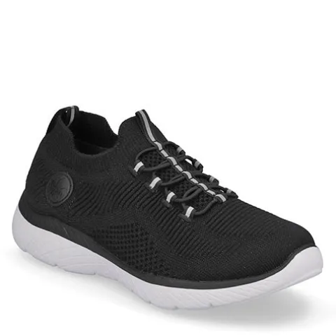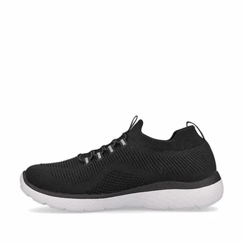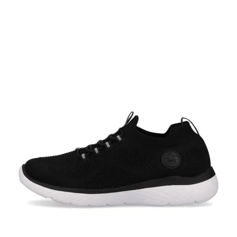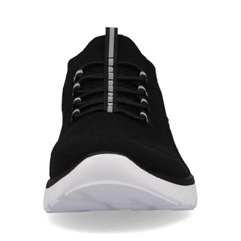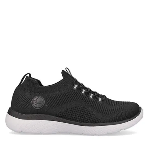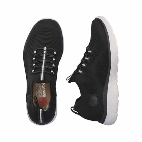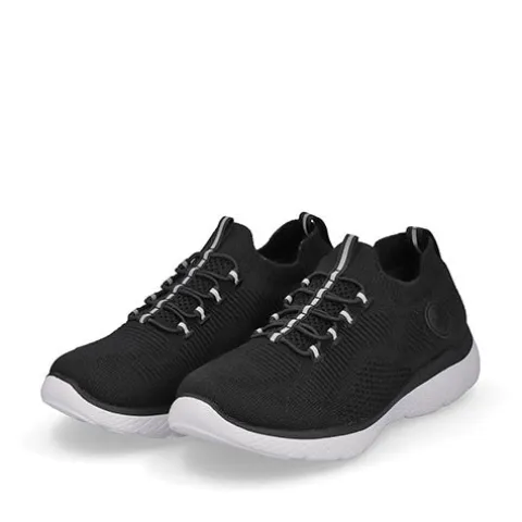 Lækker og komfortabel Rieker Lite Go For It sko af åndbart tekstil med smarte refleksdetaljer. Den elastiske åbning slutter til om anklen, og trækfanerne på hæl og pløs gør det nemt at få skoen på og af. Denne slip on-model har en ikke-justerbar elastiksnøre på vristen, som tillader tilpasning til foden i løbet af dagen. Skoen er meget komfortabel med den superbløde, polstrede og støddæmpende Soft-indersål, og den fleksible ydersål er stødabsorberende med et fint fodfæste.