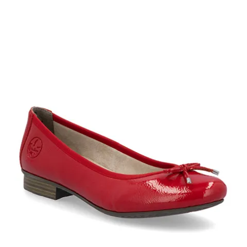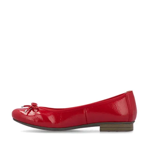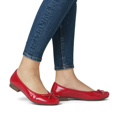 Flot ballerinasko med en overdel af imiteret lakskind dekoreret med en sløjfe på forfoden. Indvendig er hælen forstærket, og indersålen er beklædt med skind. Ydersålen er meget fleksibel med et fint fodfæste.