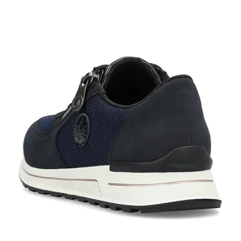 Dejlig, let sneaker fra Rieker med en overdel af tekstil med slidstærke syntetdetaljer, og en kobberfarvet stribe på mellemsålen giver skoen et feminint look. Skoen justeres med snørebånd og lukkes med en lynlås på ydersiden af snørebåndet. Skoen har ekstra vidde og er derfor ekstra rummelig omkring forfoden, og den udtagelige Antistress-indersål er polstret og komfortabel. Ydersålen er fleksibel og stødabsorberende.