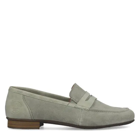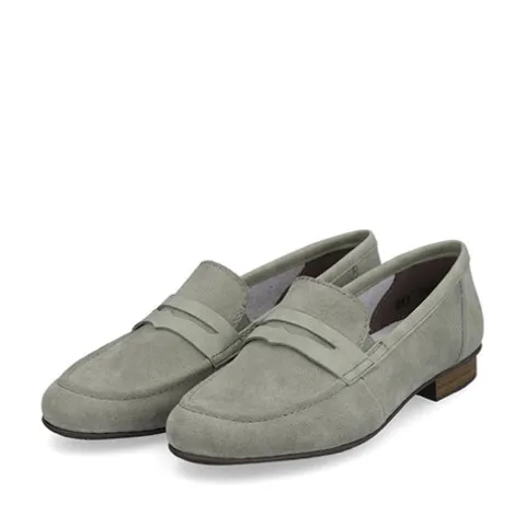 Elegant og lækker pennyloafer fra Rieker. Overdelen er blødt ruskind, og den bløde indersål samt skoens Antistress-konstruktion gør skoen stødabsorberende, fleksibel, let og rummelig. Skoen har elastik i begge sider af åbningen, som gør det nemmere at tage den af og på. Her får du et par loafers perfekte til både hverdag og fest.
