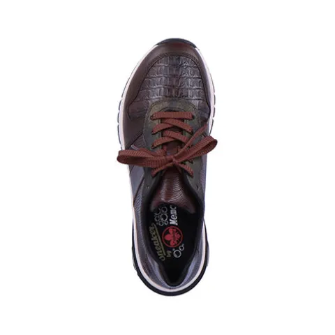Sneakers med snører, brun metallic lak på hæl og yderside, præget look på forfod, småt præget look på siderne, mat metallic ved snører. Memory-foam i dæksål.