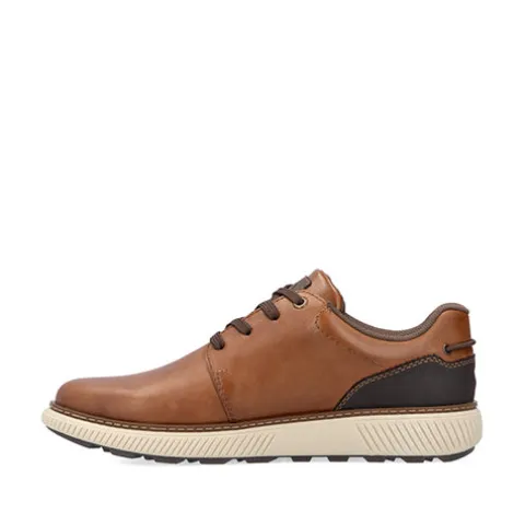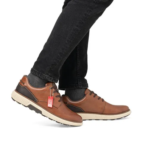 Flot og praktisk sko med en overdel af glat skind og en slidstærk syntetdetalje på hælen. Skoen lukkes med snørebånd, og et rundt elastikbånd bag på hælen kan bruges som trækfane, når man træder i skoen. Åbningen er polstret for øget komfort og støtte, og skoen er foret med tekstil. Den udtagelige Antistress-indersål er polstret og komfortabel, og med ekstra vidde om forfoden er der plads til den bredere fod. Skoen er let og fleksibel, og den stødabsorberende gummiydersål har et godt mønster og giver et godt vejgreb.