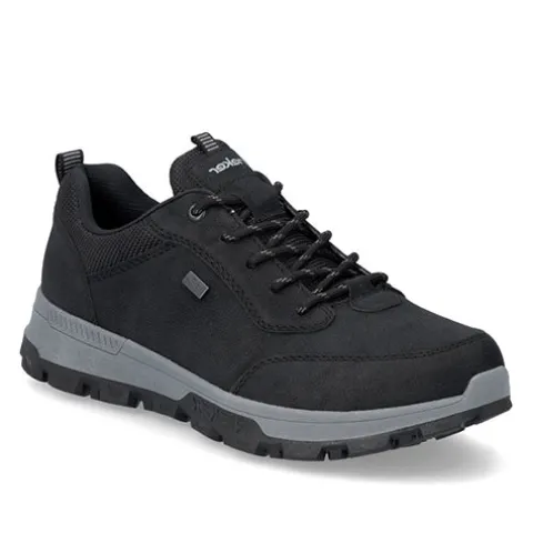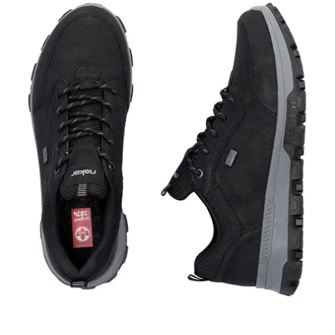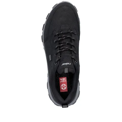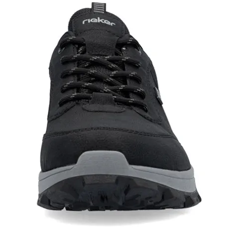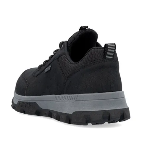 Praktisk og komfortabel sko med en overdel af syntet og tekstil. Skoen lukkes med snørebånd, og trækfane på både pløs og hæl gør det nemmere at træde i skoen. Åbningen er polstret for øget komfort og støtte, og den ekstra komfortbredde om forfoden giver en optimal pasform. Skoen er Walk Protected med den vandafvisende, åndbare RiekerTEX-membran, som holder fødderne komfortable, imens den polstrede, udtagelige MemoCup-indersål giver en dynamisk rullende effekt. Skoen er fleksibel og stødabsorberende, og den lette og kraftige LightTR-ydersål med et gribende mønster giver et godt greb på forskellige overflader.