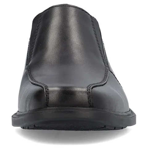 Superflot herresko med en overdel af glat skind og en elastikkile på begge sider af åbningen, så det er nemt at træde i skoen. Åbningskanten er let polstret for øget komfort, og med ekstra vidde er der endnu mere komfort til den bredere fod, da skoen er mere rummelig omkring forfoden. Antistress-indersålen er polstret og komfortabel, og ydersålens mønstrer giver et fint fodfæste.