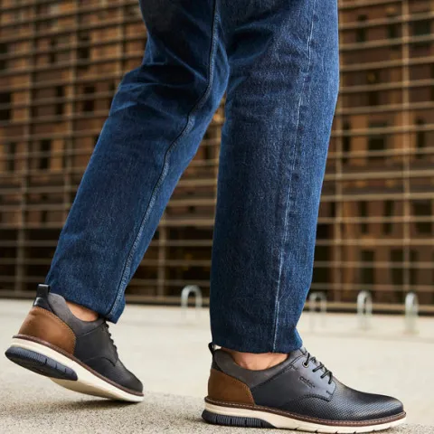 Lækker hyttesko med en overdel af glat skind, der er udstyret med lufthuller på forfoden for øget åndbarhed og komfort, samt blødt, polstret tekstil i åbningen. En trækfane på hælen gør det nemt at træde i skoen, og med en ikkejusterbar elastiksnøre tilpasser skoen sig til foden i løbet af dagen. Den bløde indlægssål beklædt med skind giver ekstra støtte og komfort hele dagen, imens den fleksible gummiydersål er stødabsorberende med et godt vejgreb. En lys stikning rundt om sålen tilføjer en elegant detalje, der fremhæver skoens design. Perfekt til dig, der ønsker stil og funktionalitet i én sko.