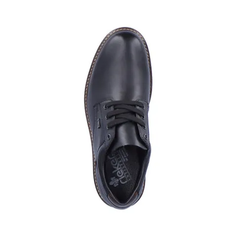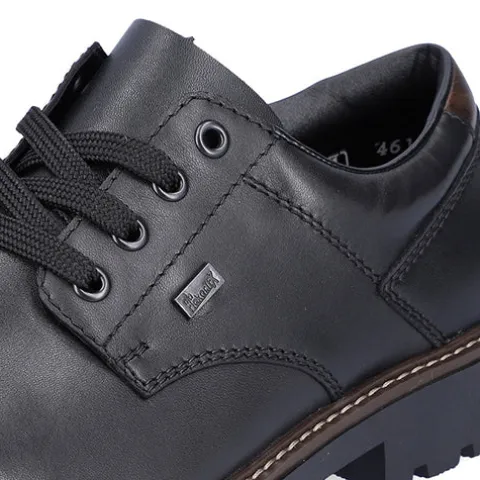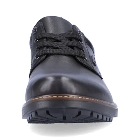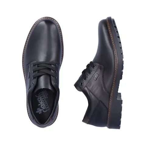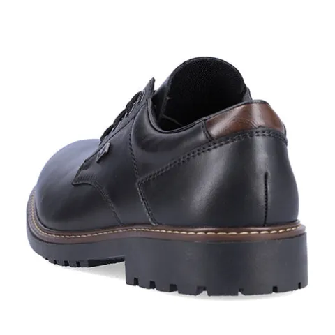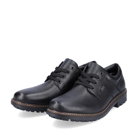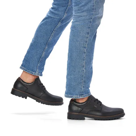 Pæn og praktisk herresko fra Rieker med en slidstærk overdel af glat skind og syntet. Skoen lukkes med snørebånd. En RiekerTEX-membran holder fødderne tørre, og den komfortable indersål holder fødderne behagelige hele dagen. Den fleksible og kraftige ydersål har et groft mønster og giver et godt fodfæste.