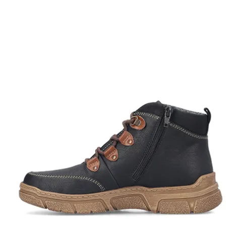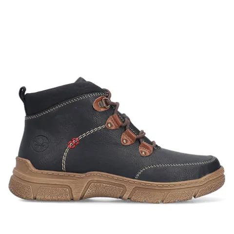 Dejlig støvle med en overdel af syntet med kontrastsyninger, og indvendig har støvlen et lunt foer. Støvlen justeres med snørebånd og lukkes med en lynlås på indersiden af anklen, og en trækfane bagpå gør det nemt at træde i støvlen. Med vidde H er der plads til den bredere fod. Den udtagelige indersål er polstret, støddæmpende og komfortabel, og den fleksible ydersål er stødabsorberende med et godt fodfæste.