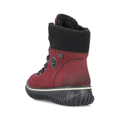 Dejlig vinterstøvle med en overdel af syntet i nubuck-look. Støvlen justeres med snørebånd og lukkes med en lynlås på indersiden af anklen. Den brede åbningskant om anklen er godt polstret for øget komfort og beskyttelse, og med komfortvidde er der mere plads om forfoden. Indvendig har støvlen et varmt foer samt en vandafvisende Rieker-Tex-membran, så fødderne holdes varme og behagelige. Den udtagelige indersål er polstret og komfortabel, og den fleksible ydersål er stødabsorberende med et godt vejgreb.