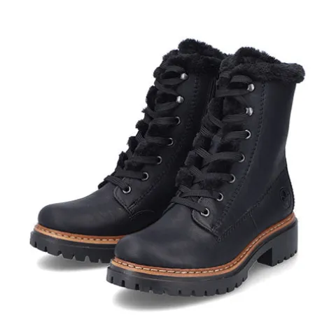 Varm og smart vinterstøvle med en overdel af syntet i læderlook. Støvlen lukkes med en lynlås på indersiden af anklen og justeres med snørebånd over vristen. Indvendig er støvlen foret med et varmt fleecefoer, som desuden dekorerer kanten på bl.a. åbningen. Med ekstra rummelighed om forfoden er der ekstra komfort til foden og tæerne. Antistress-indersålen er komfortabel, og den kraftige ydersål med sit grove mønster er stødabsorberende med et godt fodfæste.