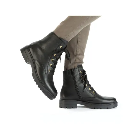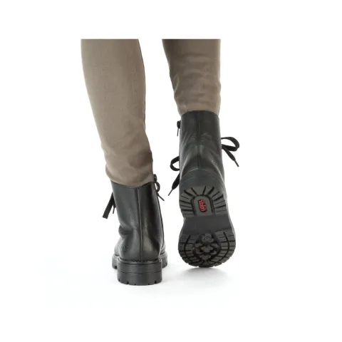 Lækker og let ankelstøvle med en overdel af glat skind. Støvlen justeres med snørebånd og lukkes med en lynlås på indersiden af anklen. Støvlen har komfortvidde med lidt mere rummelighed om forfoden og tæerne, og et let fleecefoer holder dine fødder lune. Indersålen er komfortabel, og den kraftigt mønstrede gummiydersål er fleksibel og stødabsorberende med et godt vejgreb.