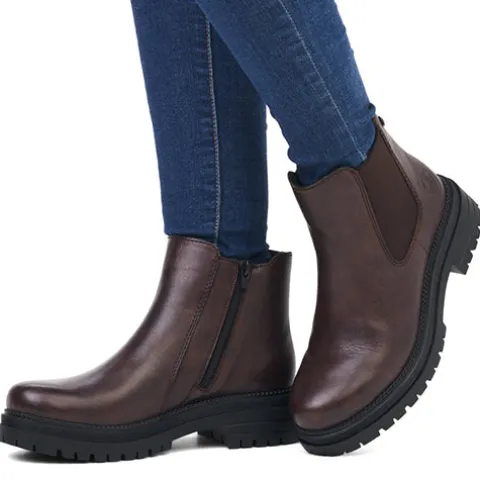 Lækker og let ankelstøvle med en overdel af glat skind, dekoreret med et lille metallogo på ydersiden. Støvlen lukkes med en lynlås på indersiden, og med et elastikpanel på ydersiden tilpasser støvlen sig nemt til anklen. Støvlen er rummelig med god plads til forfoden og tæerne. Støvlen har et let fleecefoer, og den komfortable indersål kan tages ud. Den kraftige, fleksible ydersål er stødabsorberende og giver med sit grove mønster et godt fodfæste.