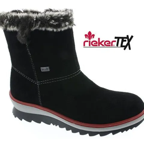 Fin Rieker-støvle med vandtæt RiekerTEX-membran. Det varme uldfoer holder fødderne varme. Lynlås på indvendig side af skaftet.