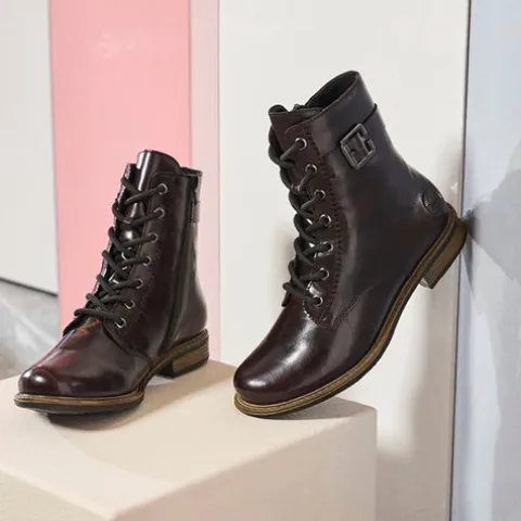 Flot støvle med en overdel af imiteret skind dekoreret med en rem med pyntespænde på siden. Støvlen justeres med snørebånd og lukkes med en lynlås på indersiden af anklen. Med vidde H er der plads til den bredere fod. Indvendig har støvlen et let, lunt fleecefoer. Den udtagelige indersål er polstret, støddæmpende og komfortabel, og den fleksible gummiydersål er stødabsorberende med et godt fodfæste.