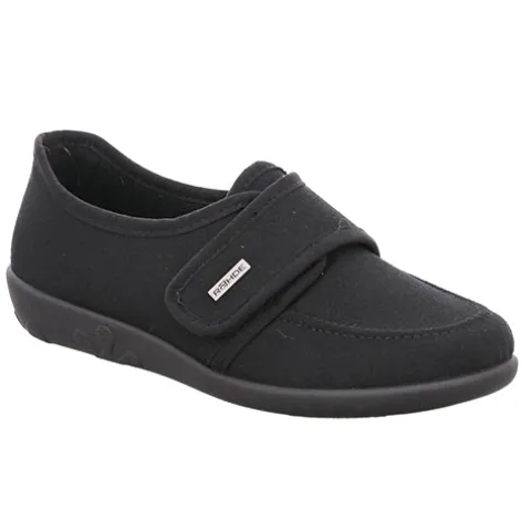 Fin hjemmesko med en overdel af tekstil og med moc toe. Hjemmeskoen lukkes med en velcrorem over vristen. Indersålen er komfortabel, og den fleksible ydersål er stødabsorberende.