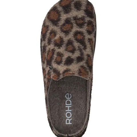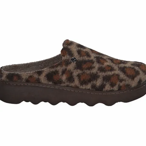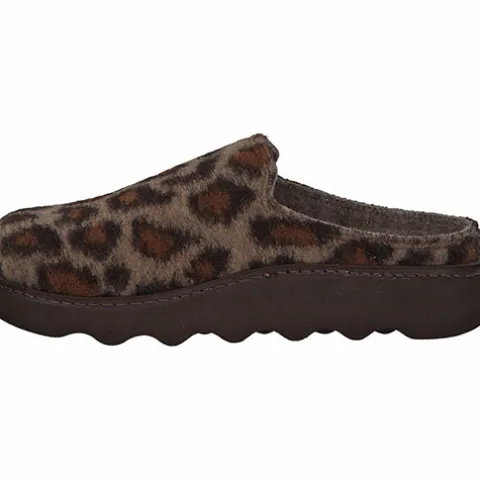 Lækker Firenze slippers-hjemmesko med en overdel af filt med leopardprint. Indvendig har hjemmeskoen et blødt filtfoer, og den udtagelige indersål er polstret, formstøbt og komfortabel. Den kraftige plateau-ydersål er fleksibel og stødabsorberende med et godt fodfæste.