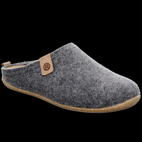 Hjemmesko fra Rohde med udtagelig dæksål i ruskind og bløde og fleksible såler. Denne model er Eco-venlig, da overdelen er lavet med 50% genbrugsuld og ydersålen er lavet af genbrugsgummi.