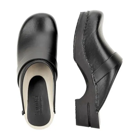 Når du køber en Sanita Ralph træsko, får du en sort tøffeltræsko, som er lavet i markedets bedste kvalitet, med en rem over vristen. Denne træsko er lavet i PU læder, hvilket gør træskoen nem at rengøre. Læderet er krampet fast på en sortmalet træbund lavet af lindetræ.