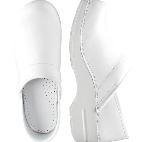 Original Sanita træsko med en overdel af kraftigt og glat kvalitetslæder. Træskoen har hælkappe, og over vristen er åbningskanten polstret for øget komfort. Indersålen er polstret og komfortabel, og ydersålen er stødabsorberende og giver en ekstra god komfort.