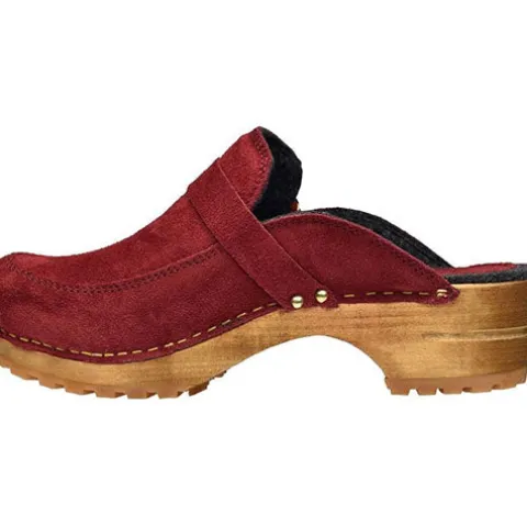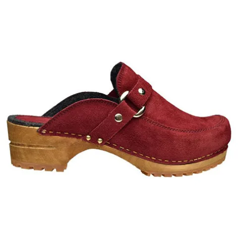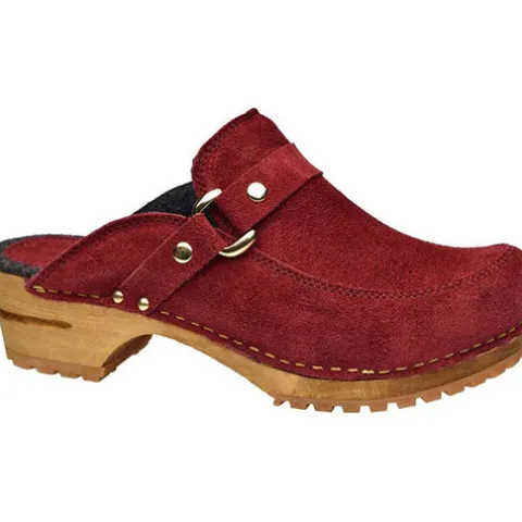 En flot version af en klassiker: Wood – Lissy Open træsko med en mellemsål af ægte antibakterielt lindetræ. Overdelen er af ruskind dekoreret med en rem med metalspænde, og indvendig er træskoen foret med uldfilt, imens hælen er beklædt med ruskind. Ydersålen er af slidstærk naturgummi.