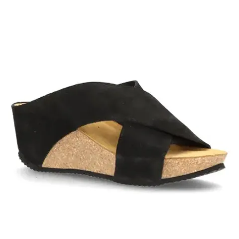 Smart Chill slip-in sandal fra Shoedesign Copenhagen. Både overdelen og dæksålen er af ruskind, så her har du høj komfort hele dagen. Overdelen er en praktisk krydsrem over forfoden med to brede remme, der går ned over mellemsålen. Dæksålen er formet til at have en fodskål, så foden holdes på plads. Med en hælhøjde på 7 cm samt et lille plateau under forfoden er sandalen behagelig at gå i.
