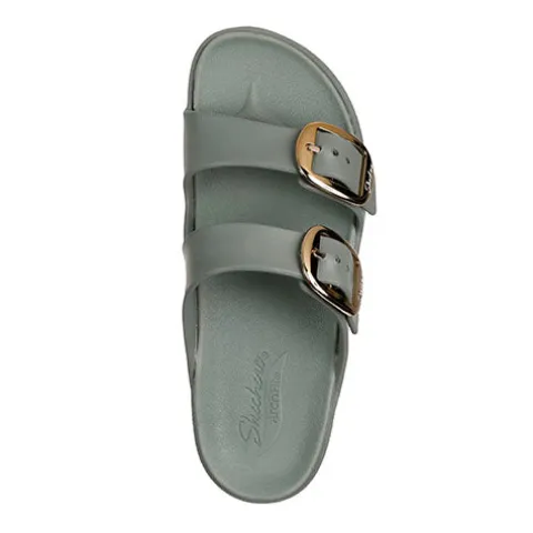 Virkelig blød Foamies Arch Fit Cali Breeze 2.0 – Gold Star slippers-sandal med to remme med guldfarvede spænder, der kan justeres. Dæksålen har tågreb og er af Luxe Foam, som føles superblødt og behageligt, og Arch Fit giver en god svangstøtte. Dæksålen har en prominent fodskål ved hælen, så foden holdes på plads. Sandalen kan maskinvaskes i koldt vand. Er stor i størrelsen.