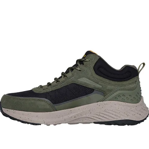 Lækker og vandtæt Bounder RSE – Brekor støvlet med en overdel af ruskind, syntet og tekstil. Støvletten lukkes med snørebånd, og en trækfane på hælen gør det nemt at træde i den. Åbningen er polstret for øget komfort, støtte og beskyttelse, og med Skechers Breathe Easy Technology, som er en ultralet, åndbar og 100 % vandtæt membran, holdes fødderne tørre. Air-Cooled Memory Foam-indersålen er komfortabel, og ydersålen med gummibelægning er stødabsorberende med et godt vejgreb.