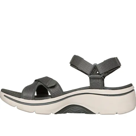 Go Walk Arch Fit – Exhilarate er en lækker sandal med en overdel af meshtekstil og slidstærke syntetdetaljer, og den justeres og lukkes med tre velcroremme (forfod, vrist og hæl) for øget tilpasning til din fod. Sandalen giver dig en god svangstøtte, og med en Contoured Goga Mat®-fodseng får du en god hælstøtte samt stabilisering af foden. Denne lette sandal har Ultra Go-støddæmpning samt stødabsorberende Comfort Pillar-teknologi i mellem- og ydersålen for ekstra støtte. Kan maskinvaskes ved maks. 30 grader. Denne Arch Fit®-sandal har fået tildelt APMA Seal of Acceptance.