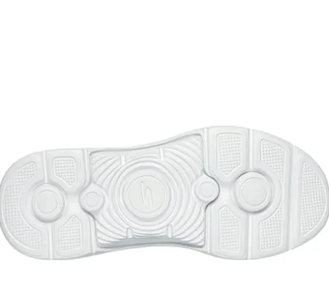 Flot og helt hvid Go Walk Arch Fit 2.0 Vanida sko med sølvfarvede detaljer. Overdelen er af åndbart mesh-tekstil med Stretch Fit, så skoen omslutter foden som en strømpe. Skoen er en slip-on-model med pyntesnørebånd, og en trækfane på hælen gør det nemt at træde i skoen. Den polstrede, udtagelige Air-Cooled Arch Fit-indersål er stødabsorberende og former sig efter foden, imens den giver svangstøtte, åndbarhed, bedre vægtfordeling og komfort. Den ekstra polstring i hælen øger komforten, og den fleksible ydersål giver et godt fodfæste. Kan maskinvaskes ved maks. 30 grader.