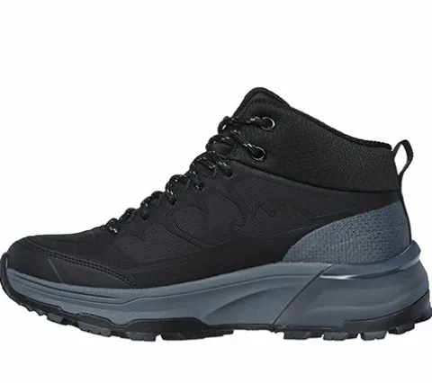 Lækker Max Protect Legacy Weekend Getaway støvle til efterårets vandringer. Overdelen er af åndbart tekstil med slidstærke syntetdetaljer på bl.a. snude og hæl, og åbningen er polstret et godt stykke ned ad skaftet for øget komfort og støtte. Støvlen justeres samt lukkes med snørebånd, og en trækfane på hælen gør det nemt at træde i støvlen, som er 100 % vandtæt med den lette, fleksible og langtidsholdbare Waterproof-membran fra Skechers. Støvlen har en polstret og komfortabel Air-Cooled Memory Foam indersål, og med Rock Plate i mellemsålen får du ekstra beskyttelse på ujævnt terræn. Den slidstærke gummiydersål har en høj trækkraft og giver et godt fodfæste.