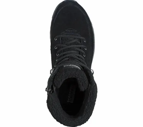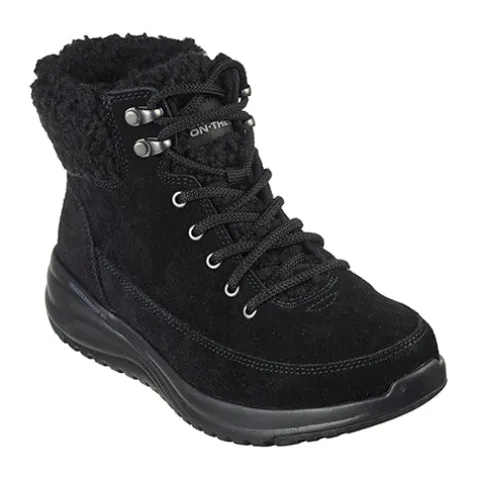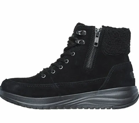 Komfortabel On-The-Go Stellar Winterize ankelstøvle med en overdel af ruskind. Støvlen justeres med snørebånd og lukkes med en lynlås på indersiden af anklen og har en bred krave af faux uld, som holder anklerne lune. Støvlen er 100 % vandtæt, og med det lune foer holdes fødderne tørre og lune. Fødderne forkæles yderligere af den åndbare Skechers Air-Cooled Goga Mat-indersål, der med en høj rebound-dæmpning giver dig følelsen af at gå på en behagelig yogamåtte hele dagen. Denne komfort forstærkes af den lette, responsive og stødabsorberende Ultra GO Cushioning-mellemsål samt den fleksible ydersål, som giver et fint fodfæste.
