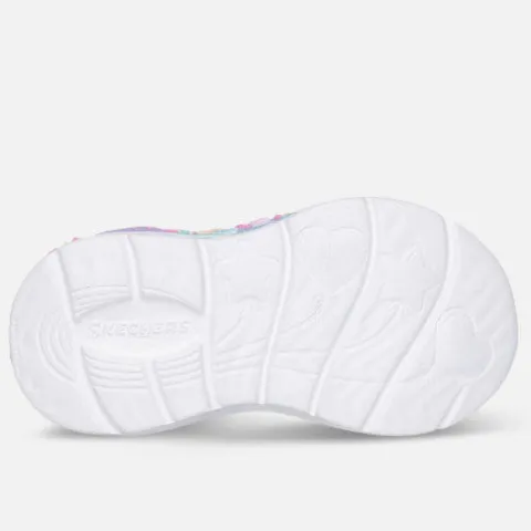 Superflot S Lights My Dreamers – Lil Mermaid sko med blinkende lys på ydersålen. Overdelen er af ombre meshtekstil med glitterbelægning, og skoen lukkes med en velcrorem over vristen, imens en ikkejusterbar elastiksnøre sørger for tilpasning til foden i løbet af dagen. En trækfane på hælen gør det nemt at træde i skoen, og åbningen er polstret for øget komfort og beskyttelse. Indersålen er komfortabel, og ydersålen er stødabsorberende.