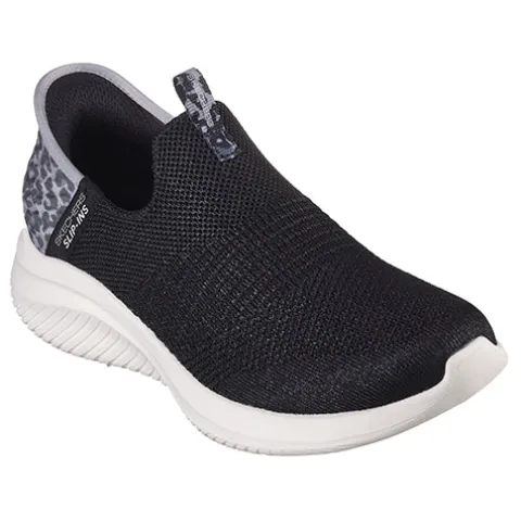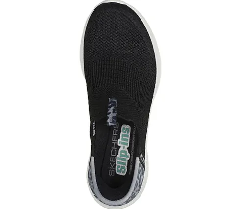 Slip-Ins Ultra Flex 3.0 Slip-Ins – Natural Step sko har Skechers nytænkende teknologi, hvor du nemt og bekvemt kan træde i skoen uden at bukke dig eller bruge dine hænder. Om hælen får du øget komfort med den indvendigt siddende specialdesignede pude, som former sig til din hæl og dens naturlige kurve. Den åndbare overdel er af tekstil med ikkejusterbare pynteelastiksnører. Air-Cooled Memory Foam-indersålen former sig efter din fod og giver en fin støddæmpning, en god støtte og komfort dagen lang, og med Stretch Fit tilpasser skoen sig din fod som strømper. Ydersålen er slidstærk og fleksibel og giver en god komfort. Kan maskinvaskes ved max 30 grader. 100 % vegansk.