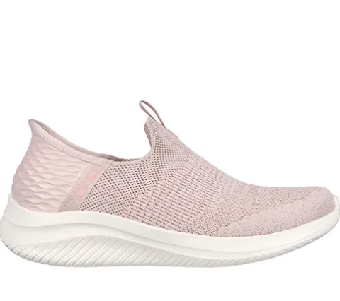 Slip-Ins Ultra Flex 3.0 Slip-Ins – Glitter Me sko har Skechers nytænkende teknologi, hvor du nemt og bekvemt kan træde i skoen uden at bukke dig eller bruge dine hænder. Om hælen får du øget komfort med den indvendigt siddende specialdesignede pude, som former sig til din hæl og dens naturlige kurve. Den åndbare overdel er af tekstil med ikkejusterbare pynteelastiksnører. Air-Cooled Memory Foam-indersålen former sig efter din fod og giver en fin støddæmpning, en god støtte og komfort dagen lang, og med Stretch Fit tilpasser skoen sig din fod som strømper. Ydersålen er slidstærk og fleksibel og giver en god komfort. Kan maskinvaskes ved max 30 grader. 100 % vegansk.