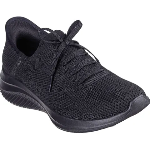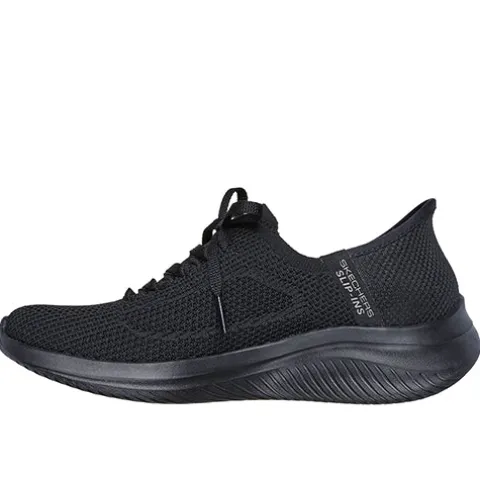 Slip-Ins Ultra Flex 3.0 – Elevated Motion sko har Skechers Slip-ins-teknologi, hvor du nemt og bekvemt kan træde i skoen uden at bukke dig eller bruge dine hænder. Om hælen får du øget komfort med den indvendigt siddende specialdesignede pude, som former sig til din hæl og dens naturlige kurve. Den åndbare overdel er af tekstil med et ikkejusterbart pyntesnørebånd. Air-Cooled Memory Foam-indersålen former sig efter din fod og giver en fin støddæmpning, en god støtte og komfort dagen lang, og med Stretch Fit tilpasser skoen sig din fod som strømper. Ydersålen er slidstærk, fleksibel og stødabsorberende med et godt fodfæste og en god komfort. Kan maskinvaskes ved max 30 grader. 100 % vegansk. Fås i halve størrelser.