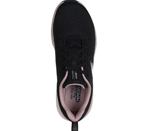 Lækker Vapor Foam – Midnight Glimmer sko udstyret med den fantastiske letvægtsdæmpningsteknologi, Vapor Foam, der garanterer en behagelig oplevelse. Overdelen er af åndbart meshtekstil dekoreret med rødguldsfarvede detaljer på hælens trækfane og en ombre glimmereffekt på ydersålen samt en slidstærk syntetdetalje om hælen. Skoen lukkes med snørebånd, og trækfanen på hælen gør det nemt at træde i skoen. Den udtagelige Air-Cooled Memory Foam-indersål er polstret og stødabsorberende, former sig til din fod og sikrer dig maksimal komfort, og sammen med den bløde mellemsål får du ekstra støtte og komfort hele dagen. Den fleksible ydersål er stødabsorberende og giver et godt fodfæste. Kan maskinvaskes ved maks. 30 grader. Er lavet af 100 % veganske materialer.