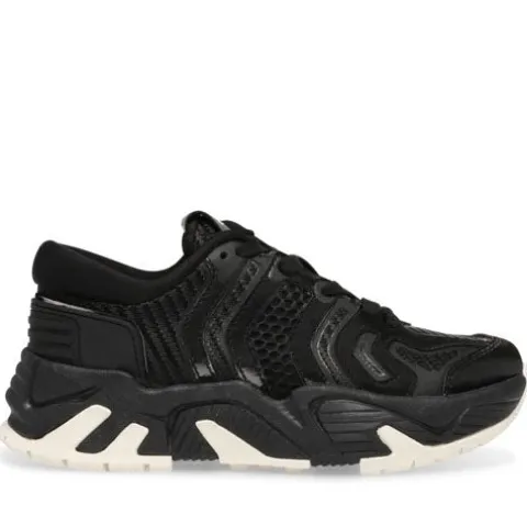 Smart Steve Madden sneaker med lakdetaljer på overdelen og en chunky sål. Modellen er til den store side, så vi anbefaler at gå en størrelse ned.