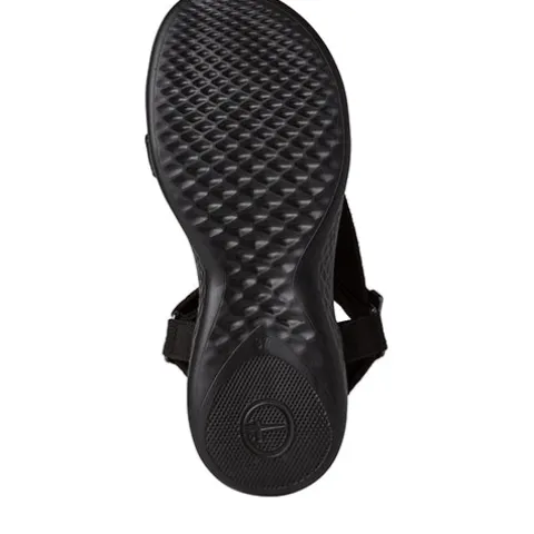 Tamaris sandal med kilehæl og udvendig lynlås. Superblød og behagelig dæksål med ekstra polstring, som kan tages ud ved behov.