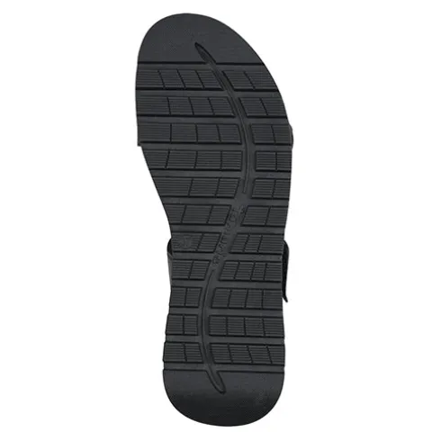 Lækker PureRelax sandal med en overdel af glat skind, tekstil og syntet. Sandalen lukkes med to velcroremme over forfod og vrist, og hælremmen har en blød polstring og er fæstnet med elastik for optimal fleksibilitet og tilpasning til foden. Sandalen har med Relax Fit en lidt bredere forfod, og den udtagelige dæksål beklædt med glat skind er polstret, komfortabel og støddæmpende. Den fleksible ydersål er stødabsorberende med et godt fodfæste.