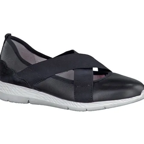 Dejlig sko med en overdel af glat skind med to elastikremme på kryds over vristen. Ydersålen er fleksibel og giver et fint fodfæste.