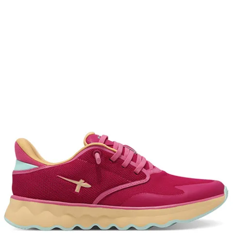 Superflot NOWANA sneaker i en iøjnefaldende farvekombination. Overdelen er af åndbart meshtekstil med syntetdetaljer. Skoen er en slip on-model med en elastisk snøre og en polstret hæl, så du nemt kan træde i skoen. Åbningen er polstret for øget komfort, og den udtagelige OrthoLite®-indersål er komfortabel. Den stødabsorberende ydersål har et spændende bølgedesign og giver et godt fodfæste. Dans gennem dagen i denne lette sko, som i øvrigt er vegansk.