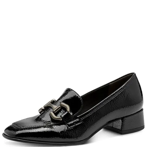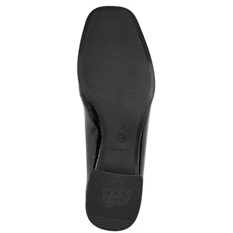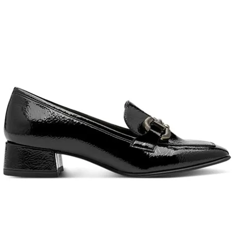 Flot sko i loaferstil med en ca. 4 cm høj blokhæl. Overdelen er af lakeret syntet foret med tekstil, og forfoden er dekoreret med et bidsel i gråt metallook. Den polstrede Touch-it-indersål er beklædt med skind, og den fleksible ydersål har AntiSlide-sål på hælen.